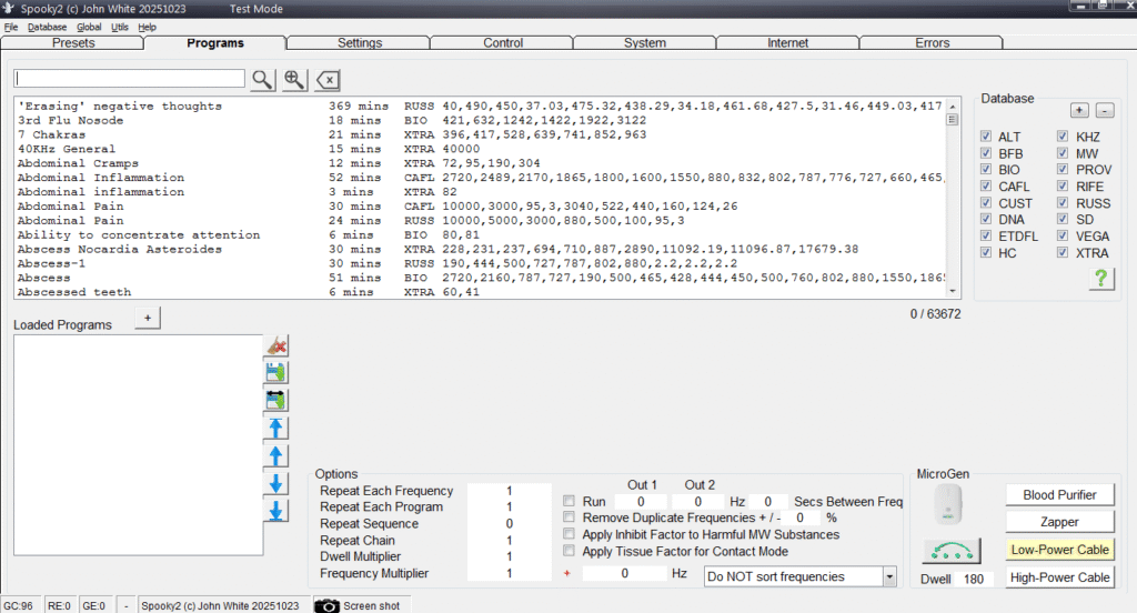 Am continuat cercetarea și în anii următori, iar în anul 2024 am achiziționat un kit cu 2 generatoare Rife, plus celelalte accesorii necesare pentru tratament. Aplicația care acționează aceste generatoare XM conține mai multe baze de date cu peste 63.000 de programe de tratament prin frecvențe. M-am documentat mai bine de un an și jumătate până ce am început să folosesc această terapie prin frevențe.